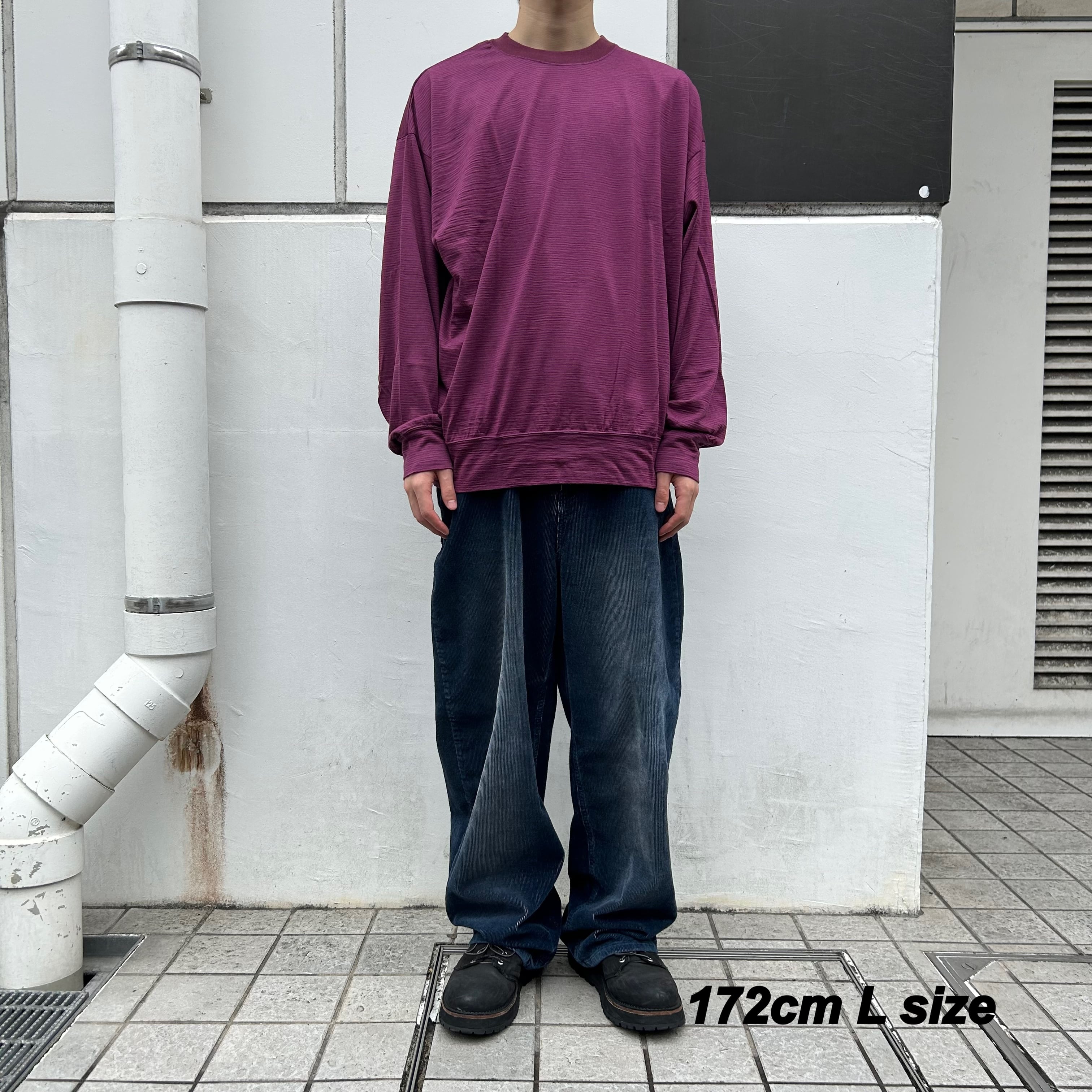 メリノウール100%の天竺編み地を使用したスウェットシャツ型のカットソー。