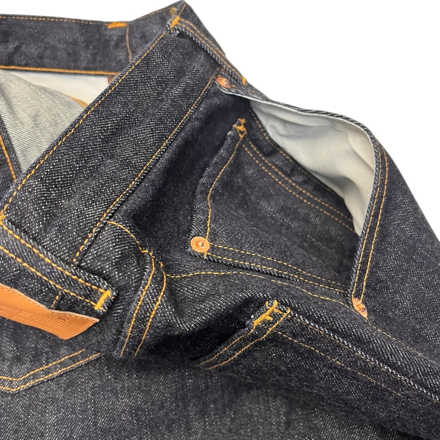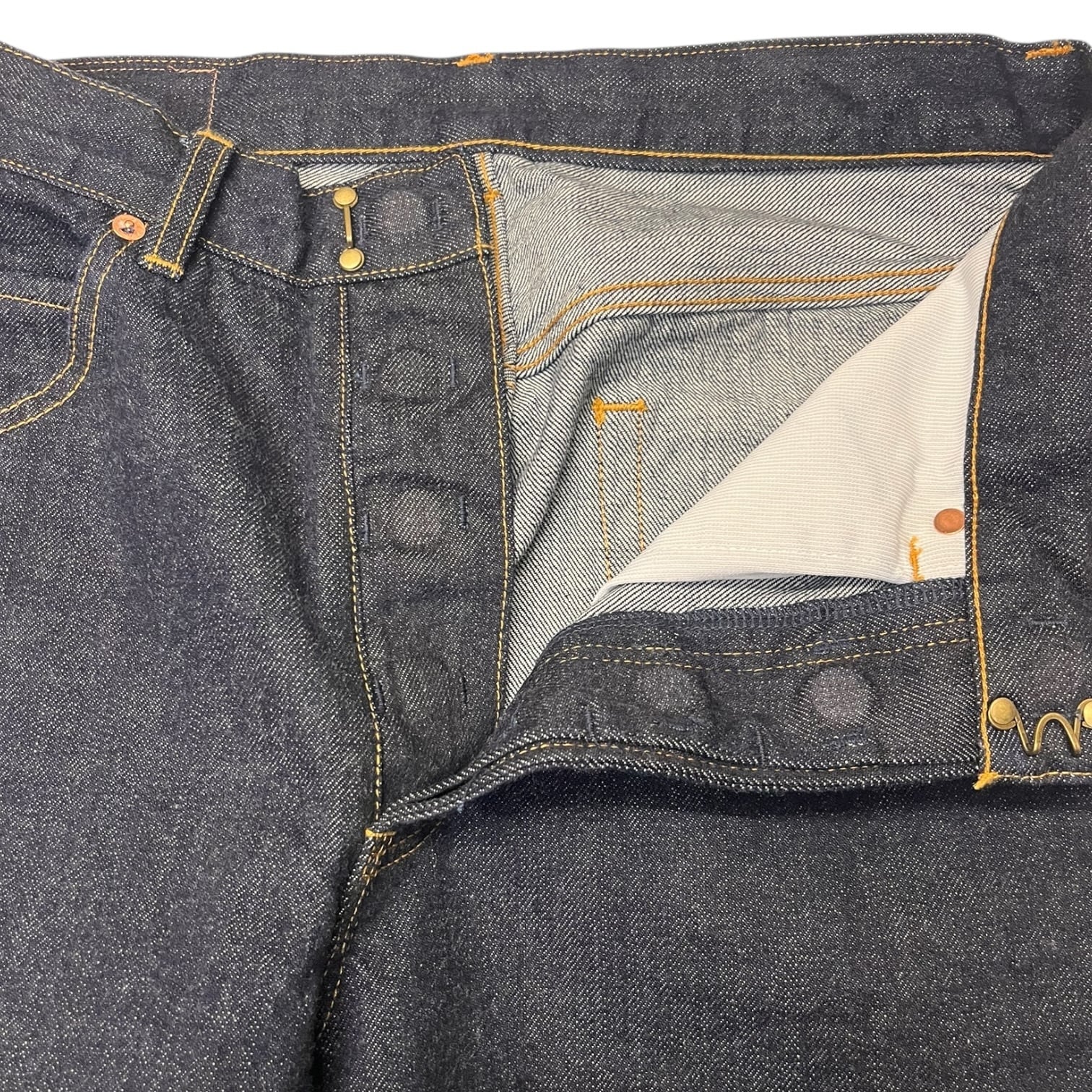 ・表地に12オンス白耳デニムを使用 ・マグネットボタンフライ®仕様 ・モバイルクリーナーポケット ・純銅製オリジナルリベット ・牛革製オリジナルパッチ ・吸湿速乾素材の袋布を使用