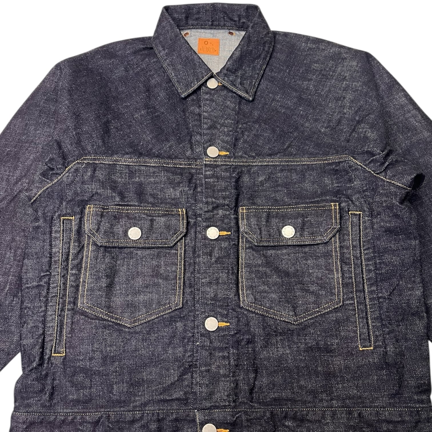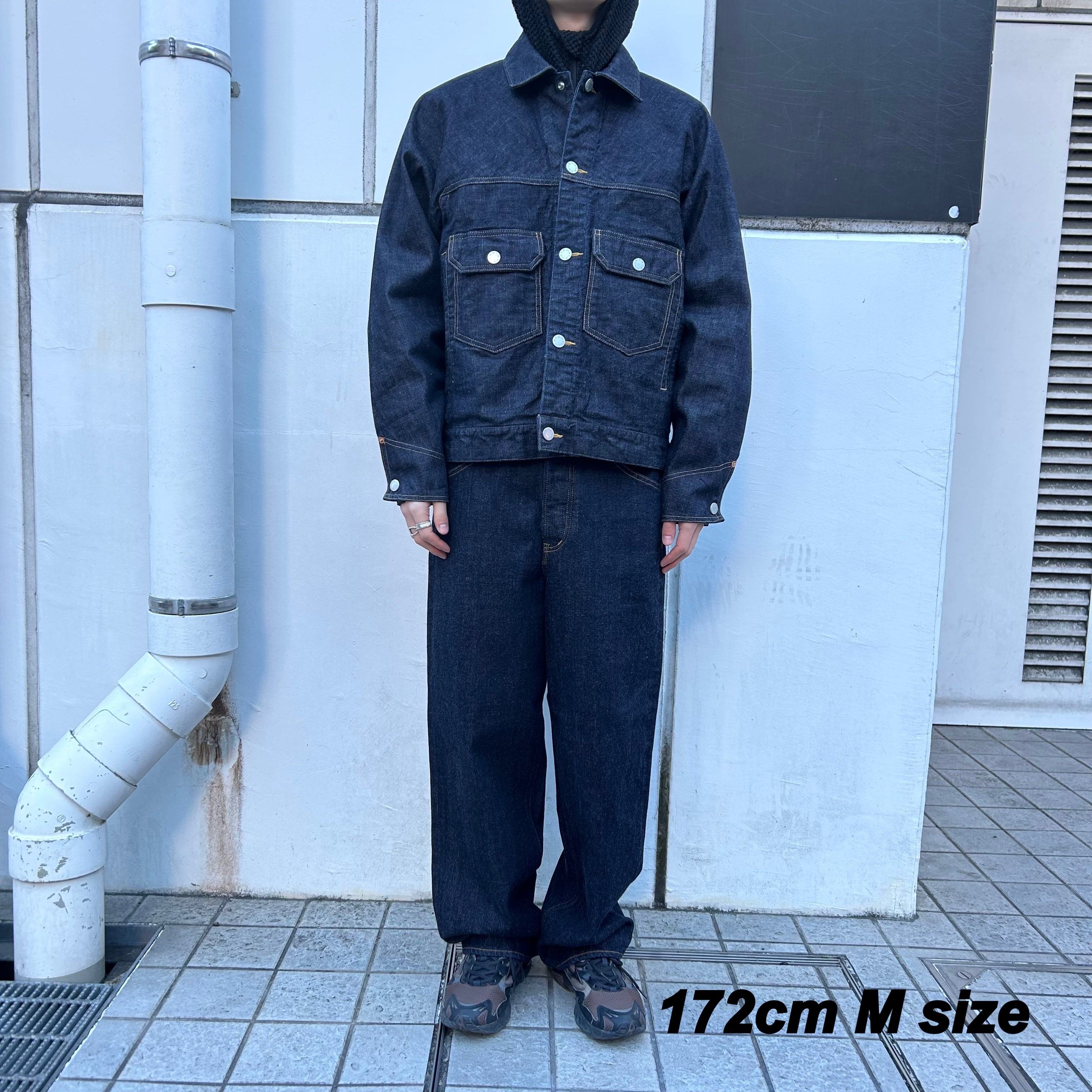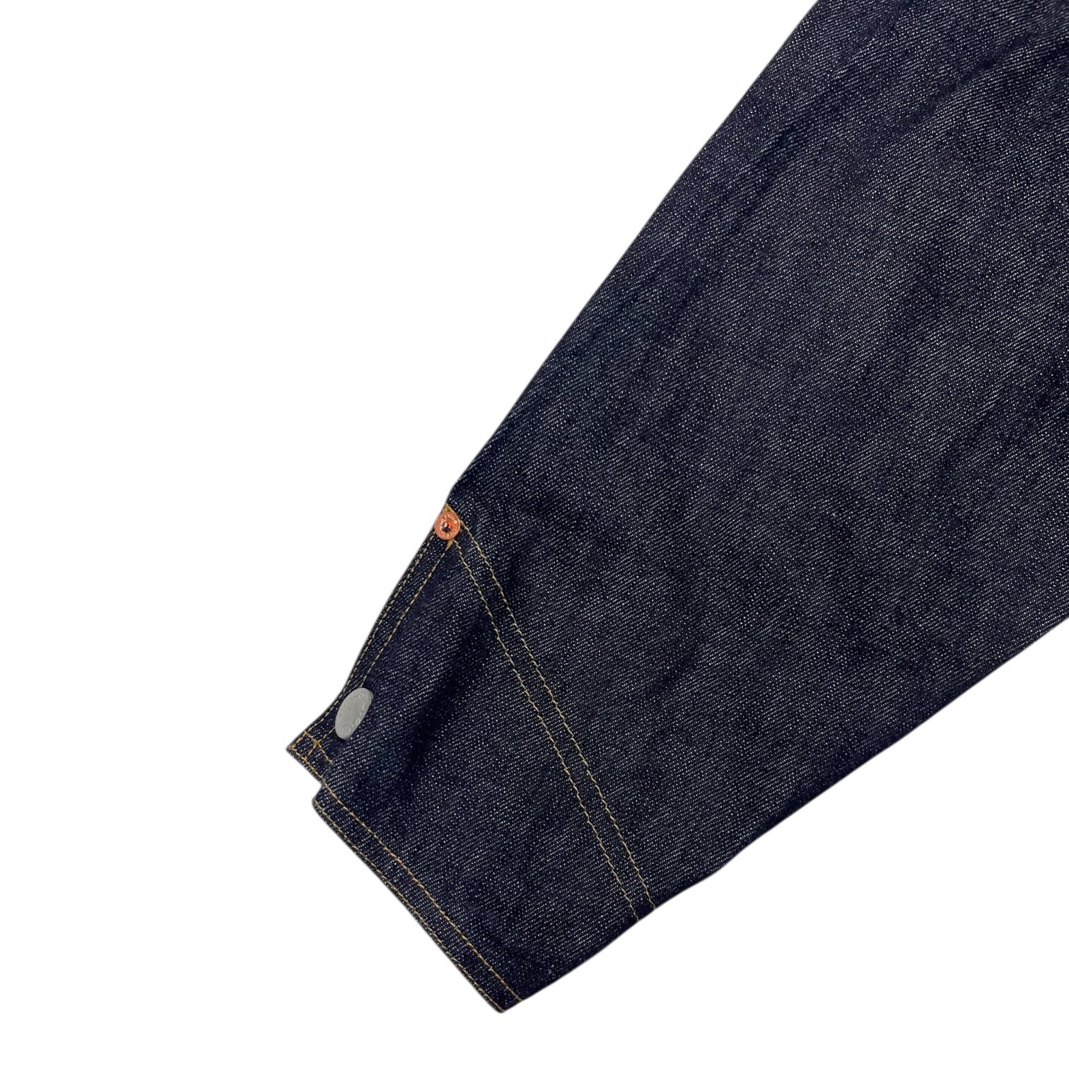 ボディが一枚構造 のトラッカージャケットを製作。 縫い目を無くす事でデニムジャケット特有の 肩周りの固さがなくなり 生地本来の柔軟さを楽しめます。