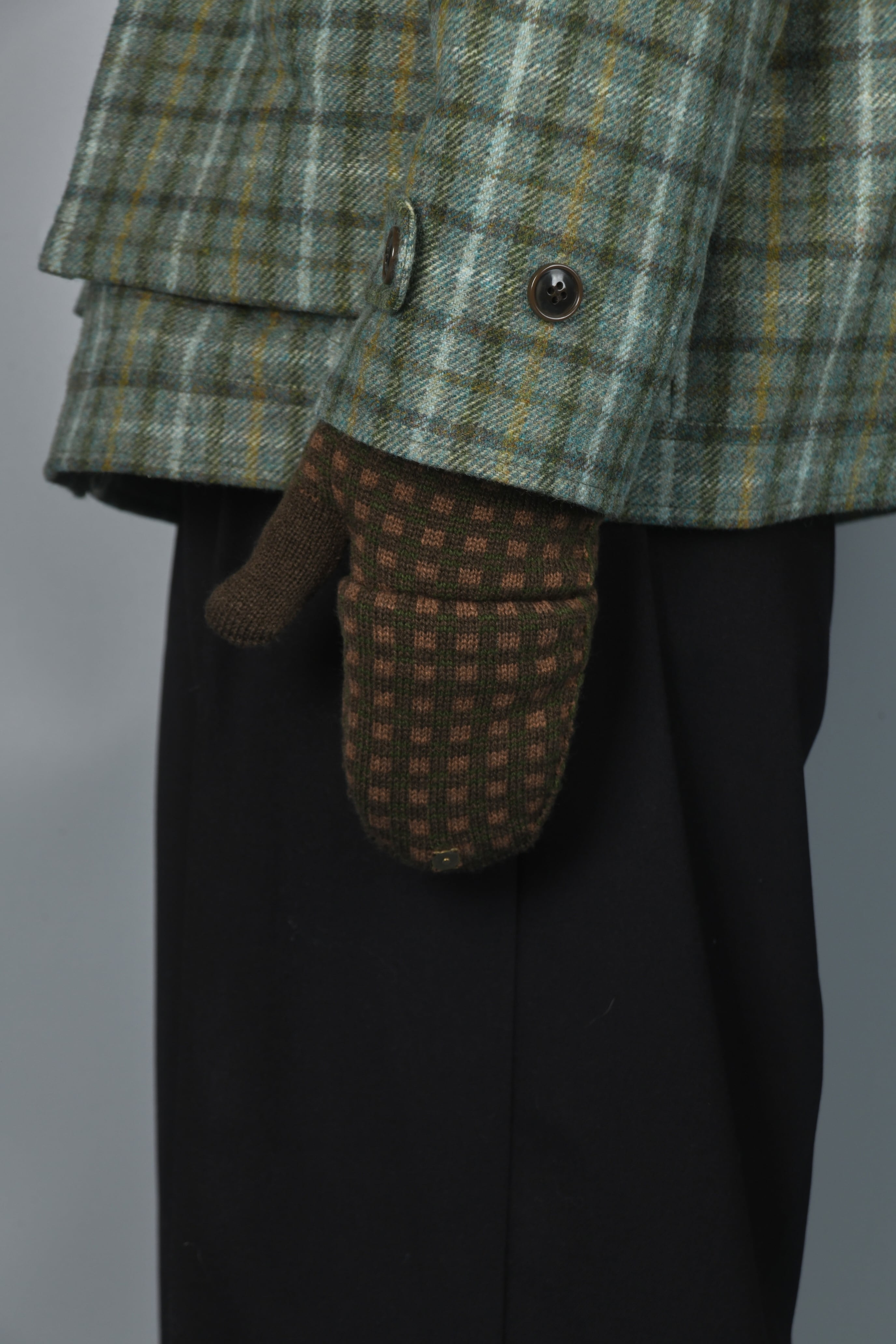 国内の老舗手袋工場で編み上げた、チェッカード柄を配したミトンタイプのグローブ。