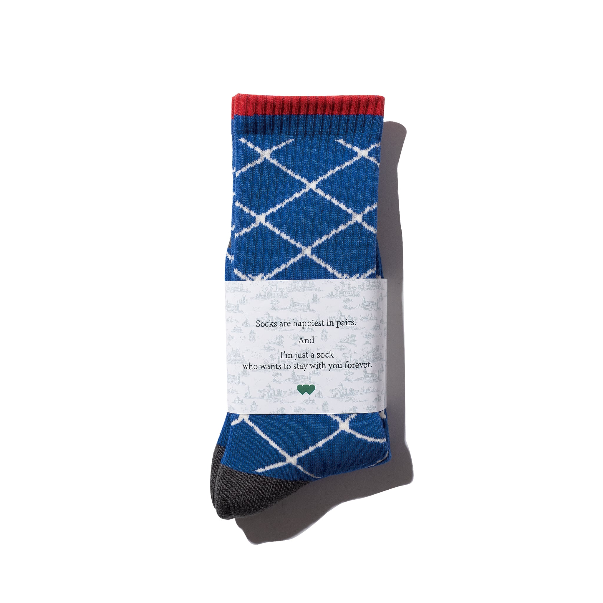 フェンスをモチーフにした程良い厚さのリブ編みソックス。
