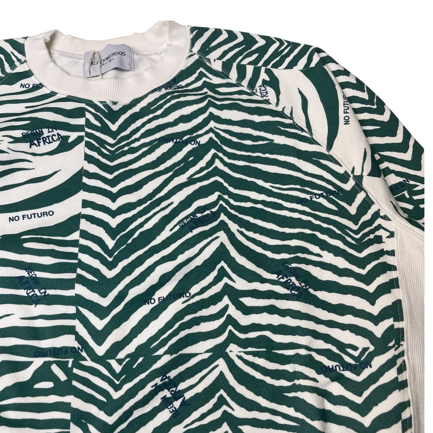 1996年製作イギリス映画「トレインスポッティング」の主人公レントンが劇中着用していたクレージーゼブラ柄のダメージスウェットを、独自のBW解釈で再現されたダメージ加工スウェット。