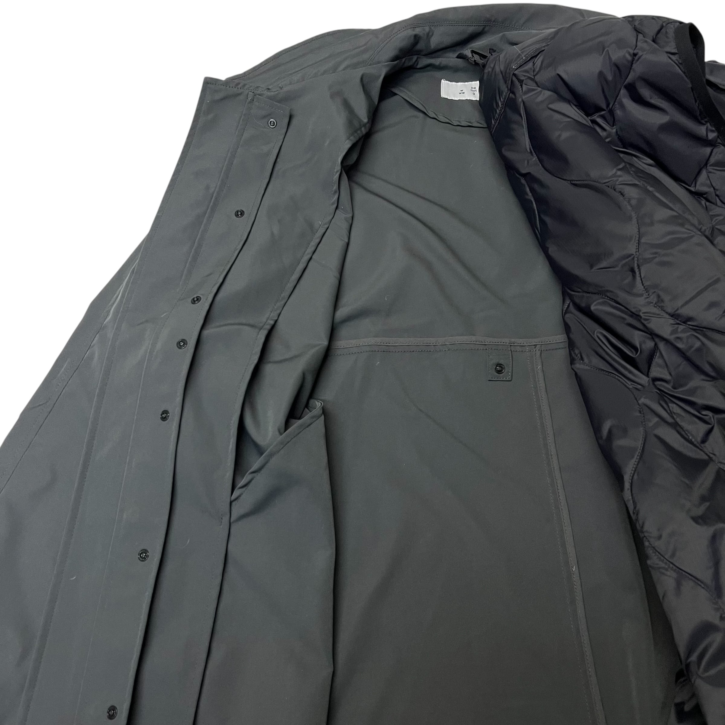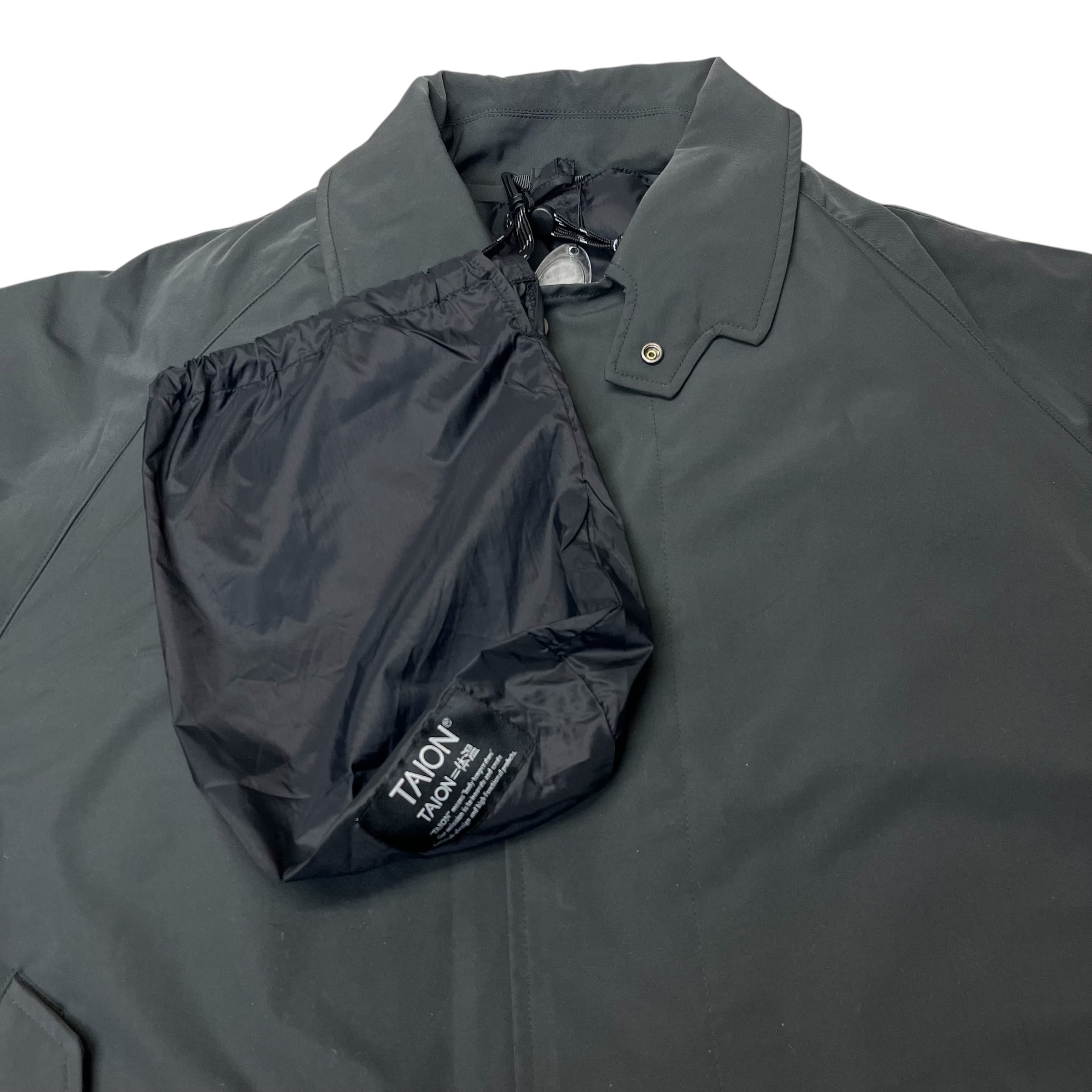 日本発のダウンブランド<TAION>とコラボレーション。ダウンライナー付きのステンカラーコート。しなやかでマットな質感のウォータープルーフポリエステル素材。スタンド襟。ライナーは取り外し可能でベストとして着用可能。TAIONオリジナルナイロン採用。800フィルパワー。