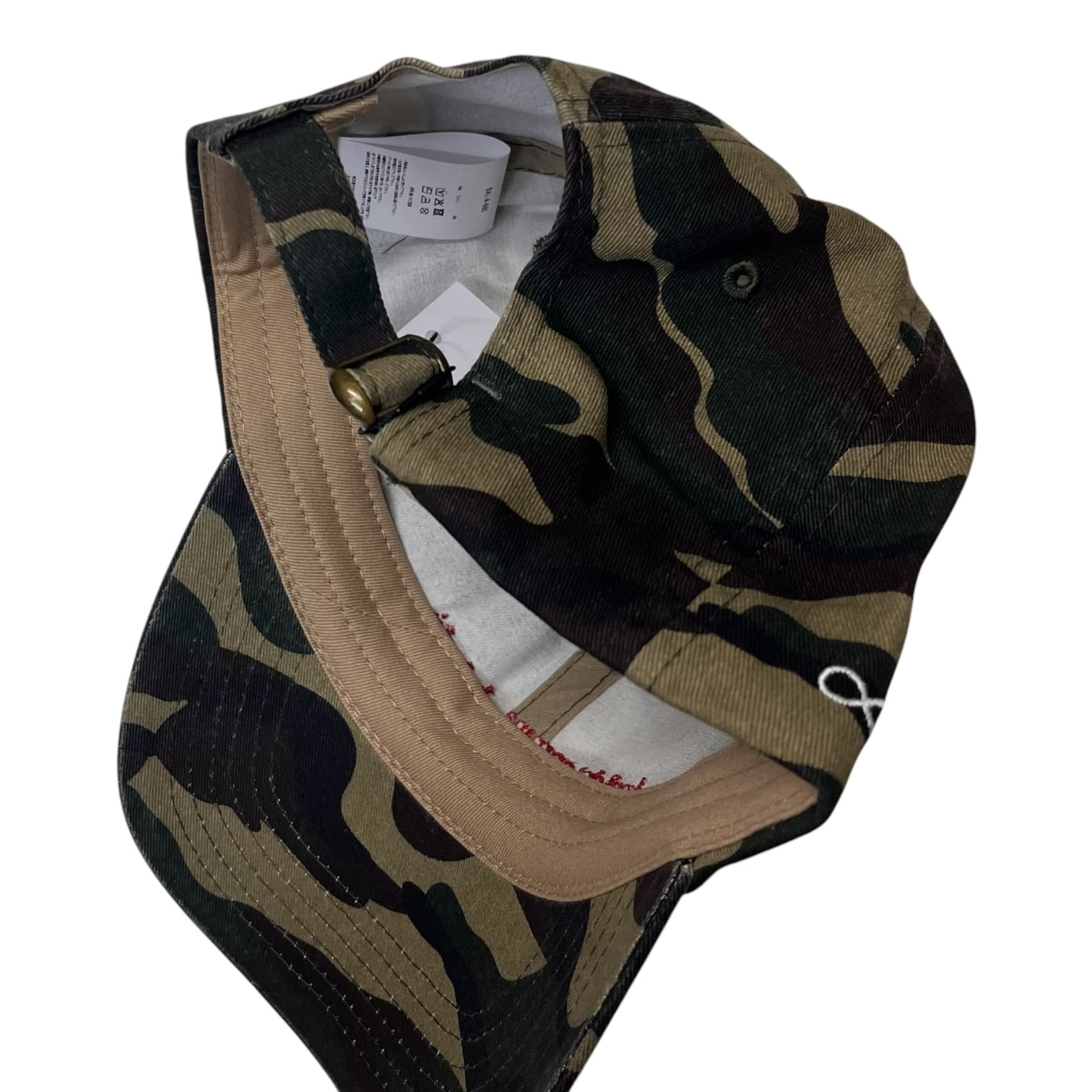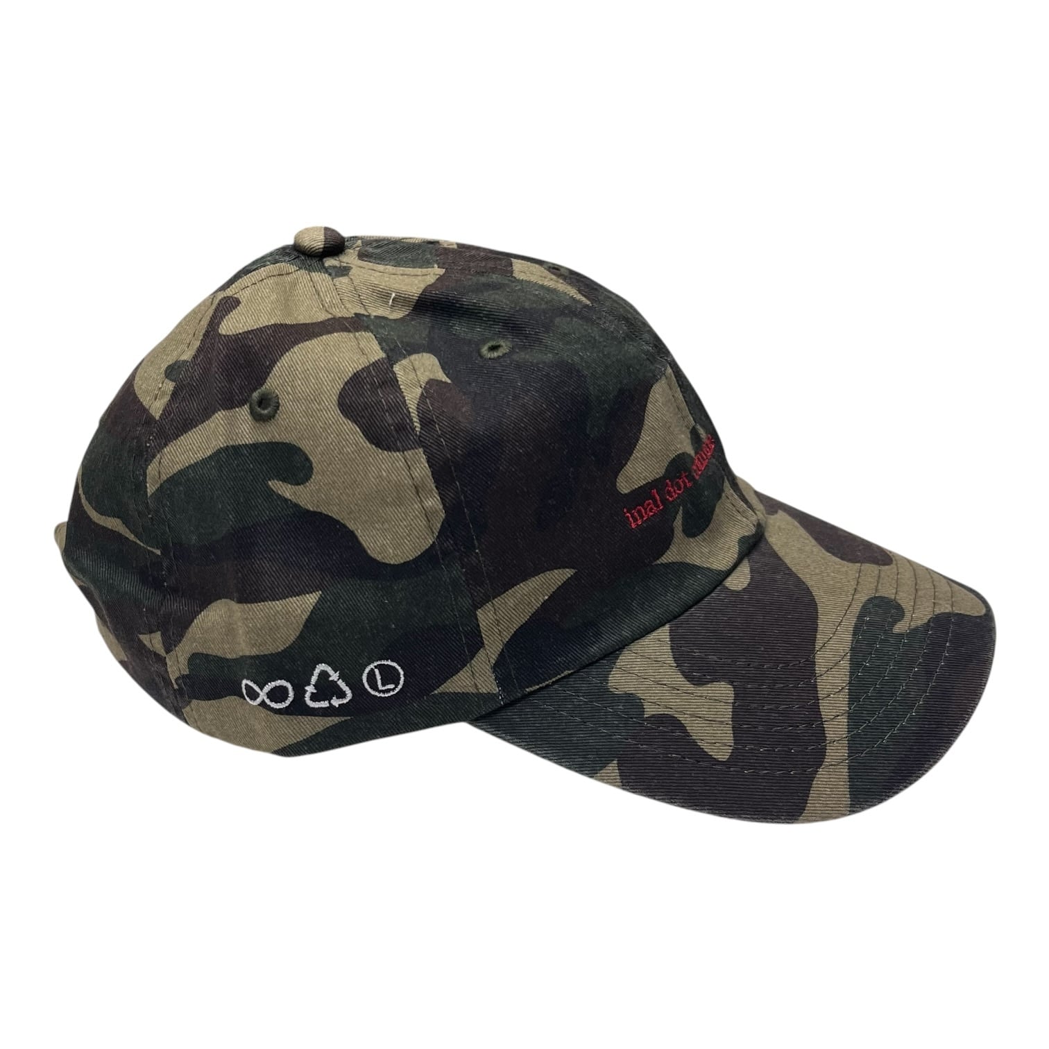 芯のないソフトなアンストラクチャーフロントパネル、メタルバックル。ロークラウン、カーブバイザー。フロントに刺繍グラフィック。