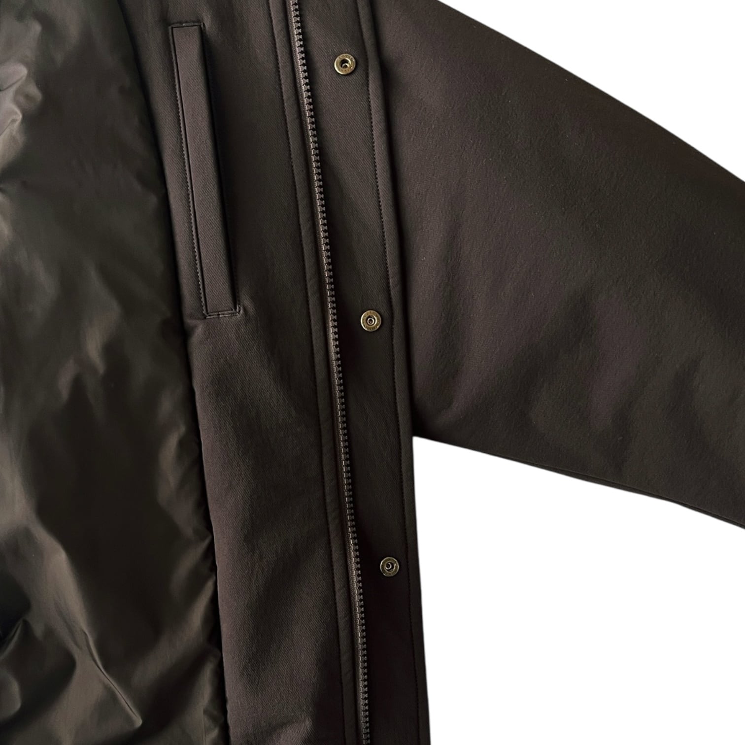 撥水・ストレッチ性のあるナイロン素材を使用したミドル丈の中綿ジャケット。 軽さと暖かさを追求したsunstate2の高機能中綿を使用。 衿には密度の高いボアを配置しフライトジャケットライクな雰囲気を演出。 フロントの2WAYポケットと左右に配置した内ポケットで収納力もある1着。 前開きはダブルジップ、袖口はタブで調節可能。