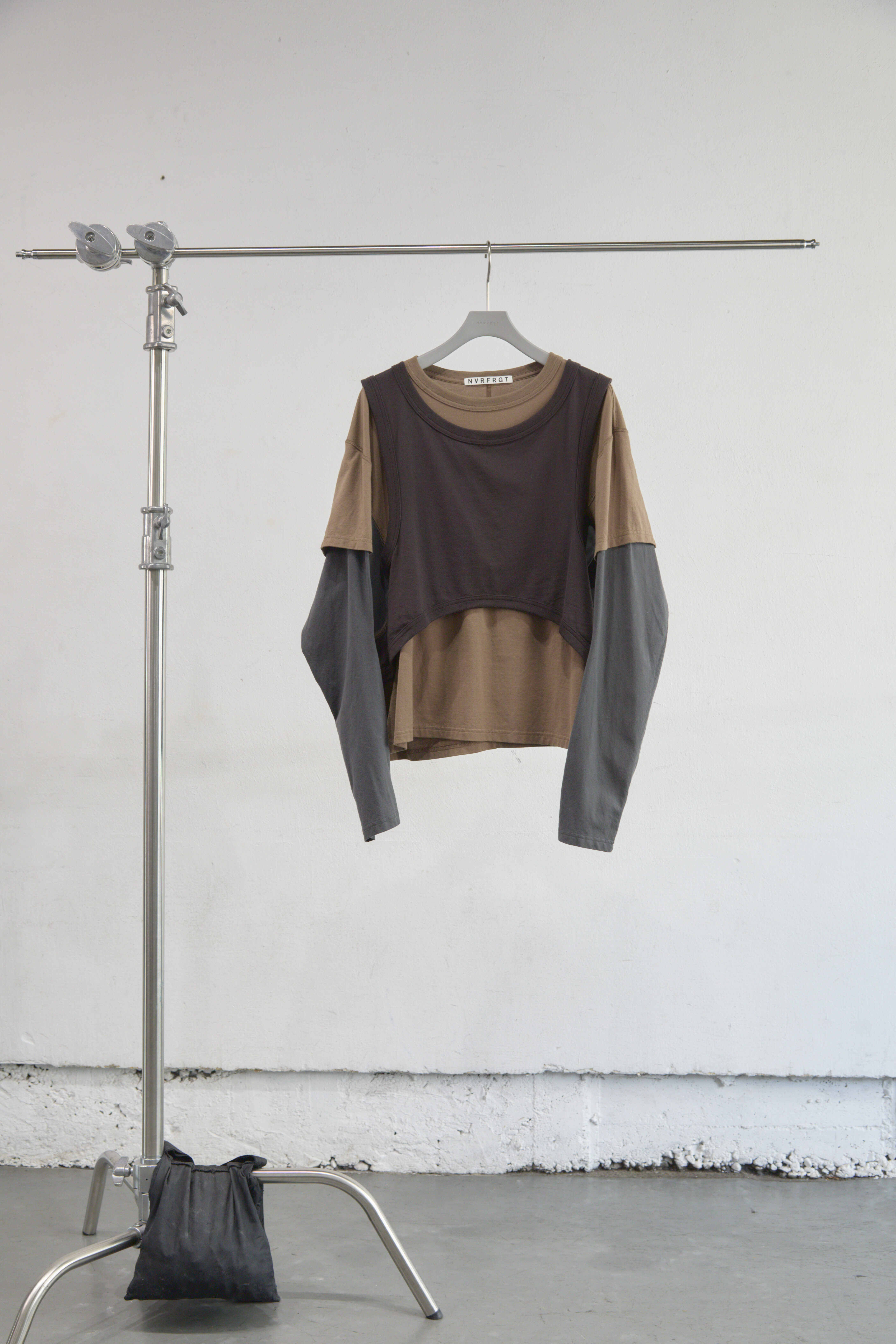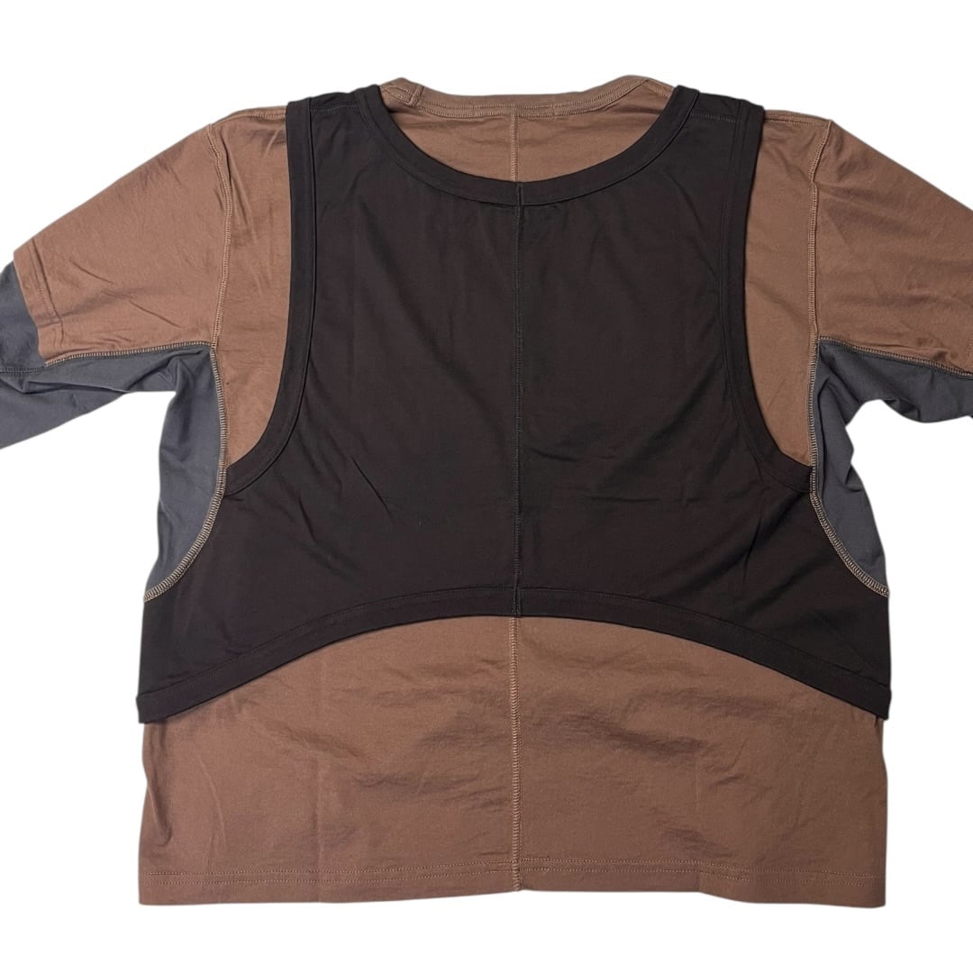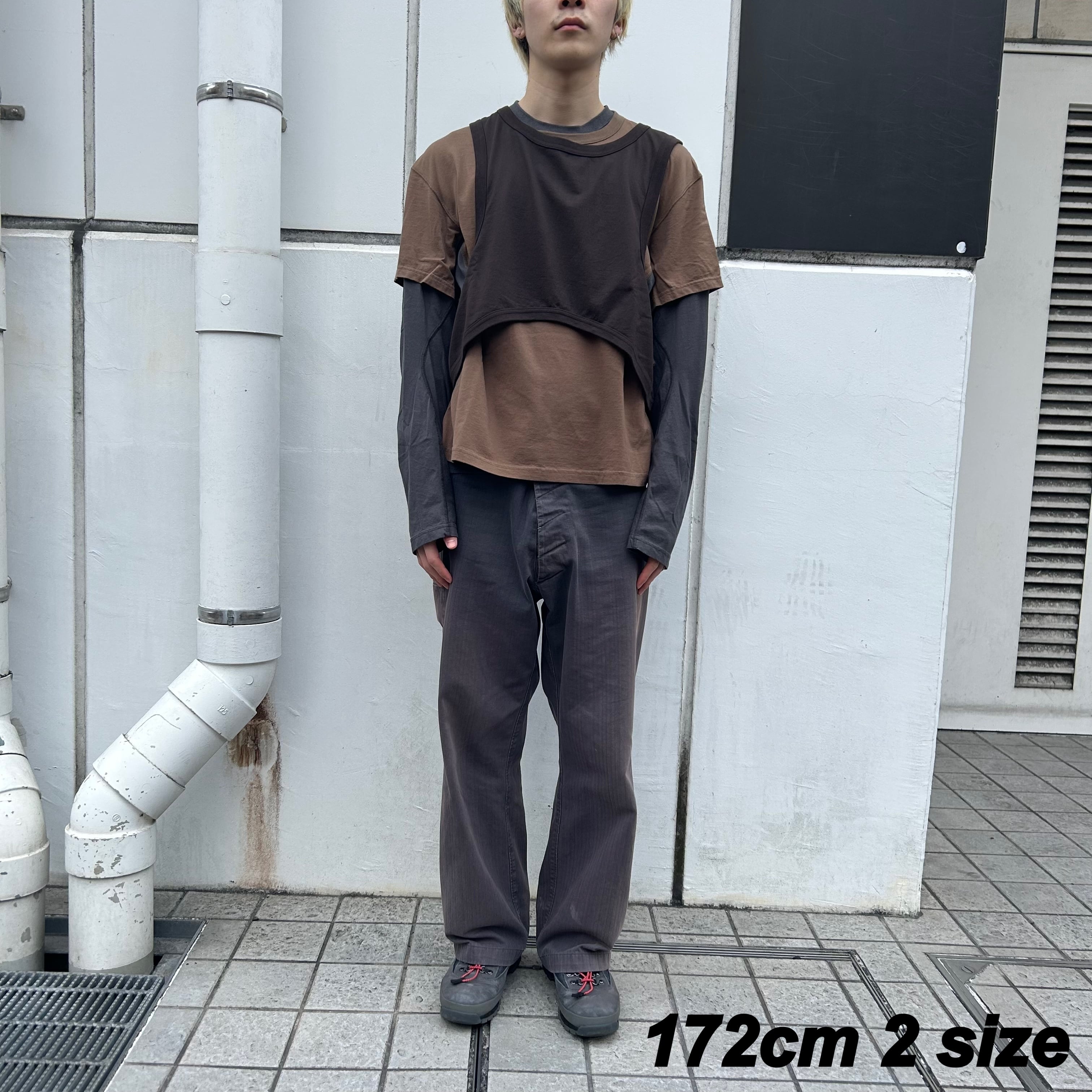 【NVRFRGT】PANELLED MULTI LAYERD T-SHIRT(BROWN)〈国内送料無料〉