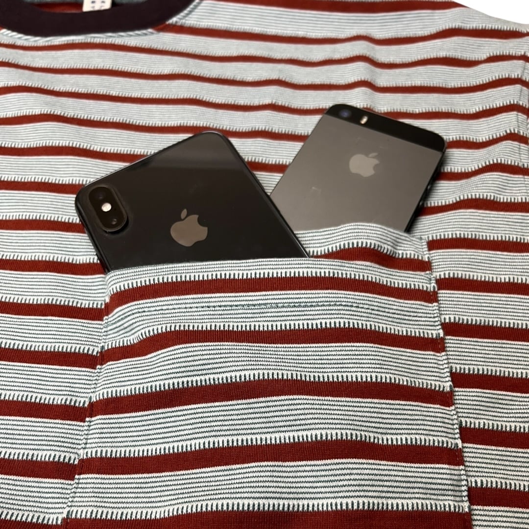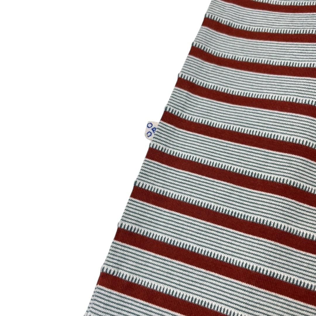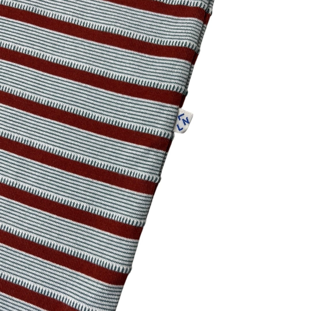 オリジナル生地のボーダー+ジャガードの Teeベースのカットソーを細み立てた上からを線部分をジャガードで加工している凹凸あるオリジナル生地。ポケットはダブルポケット。タンブラーをかける事で偶然生まれるカットソーとジャガードの縮率差による不均一な凹凸が特徴。