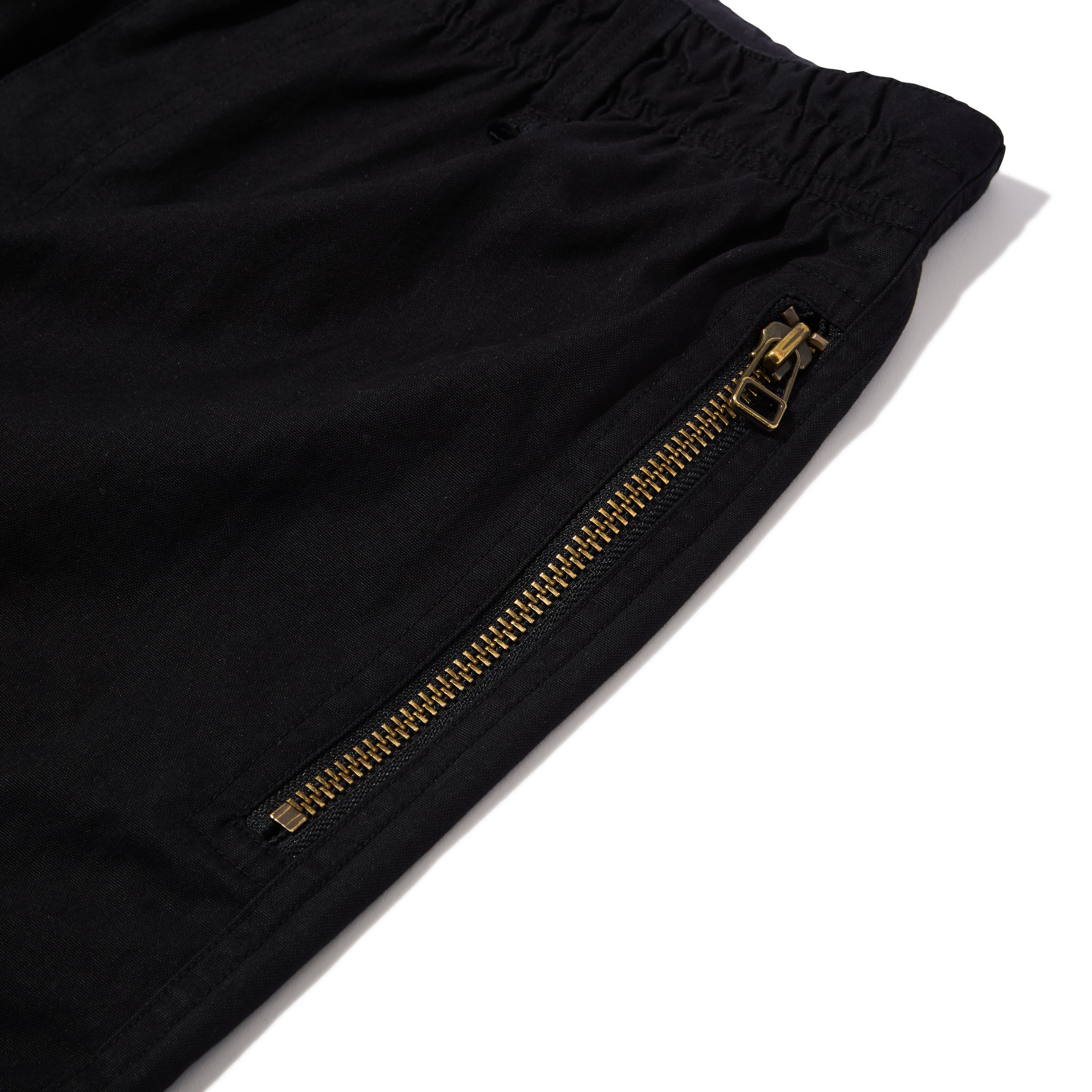 フロントのフラップポケットや膝の当て布などの特徴的なディテールはそのままに、サイドの貫通ポケットやシンチバック、裾のリブなどを廃し、都市生活やスケートボーディングに最適な仕様に変更。
