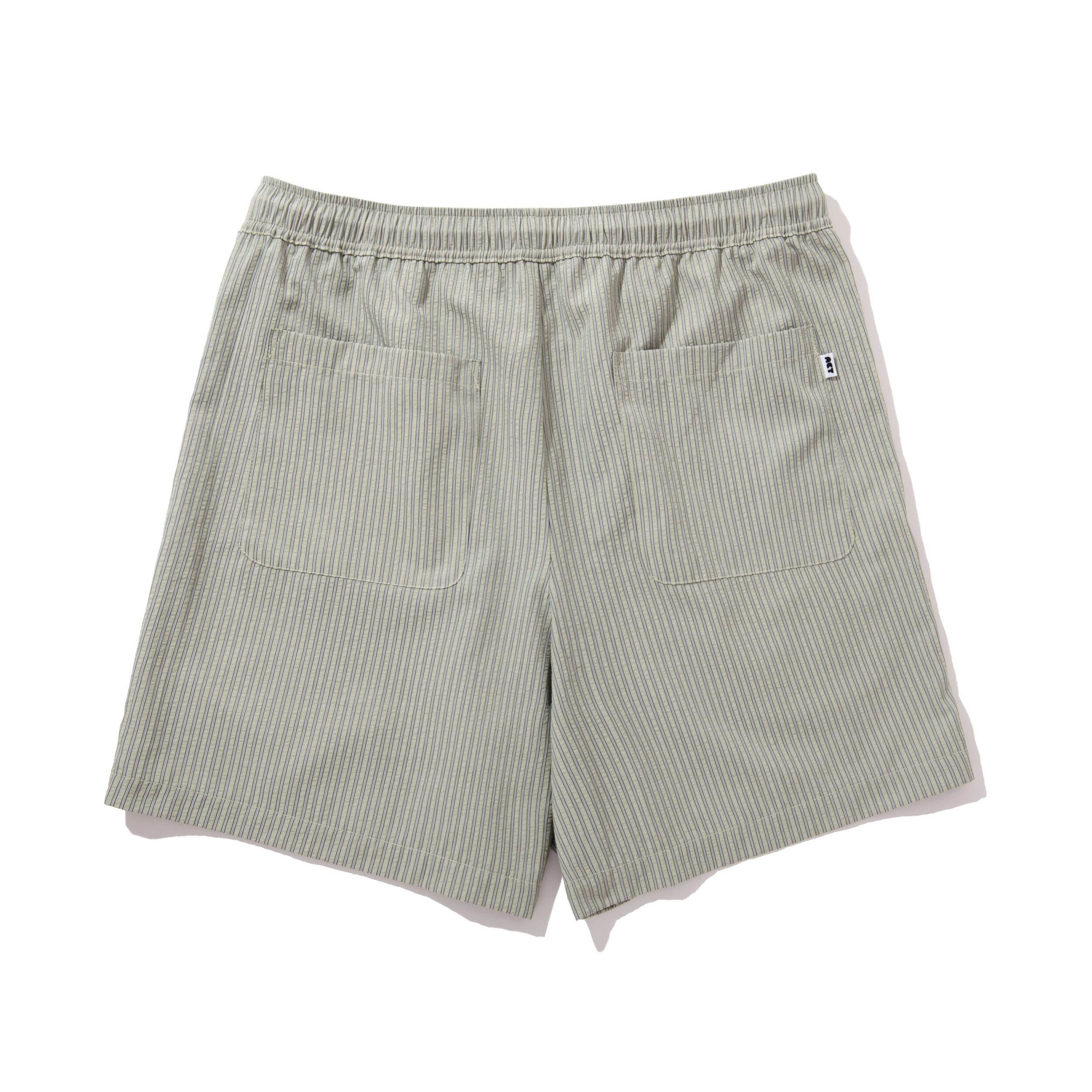 003のシャツとセットアップ仕様のシアサッカーショーツ。ウエストは生成りの丸紐で調整可能。ポケット生地はメッシュ仕様でパジャマ枠としても最適。
