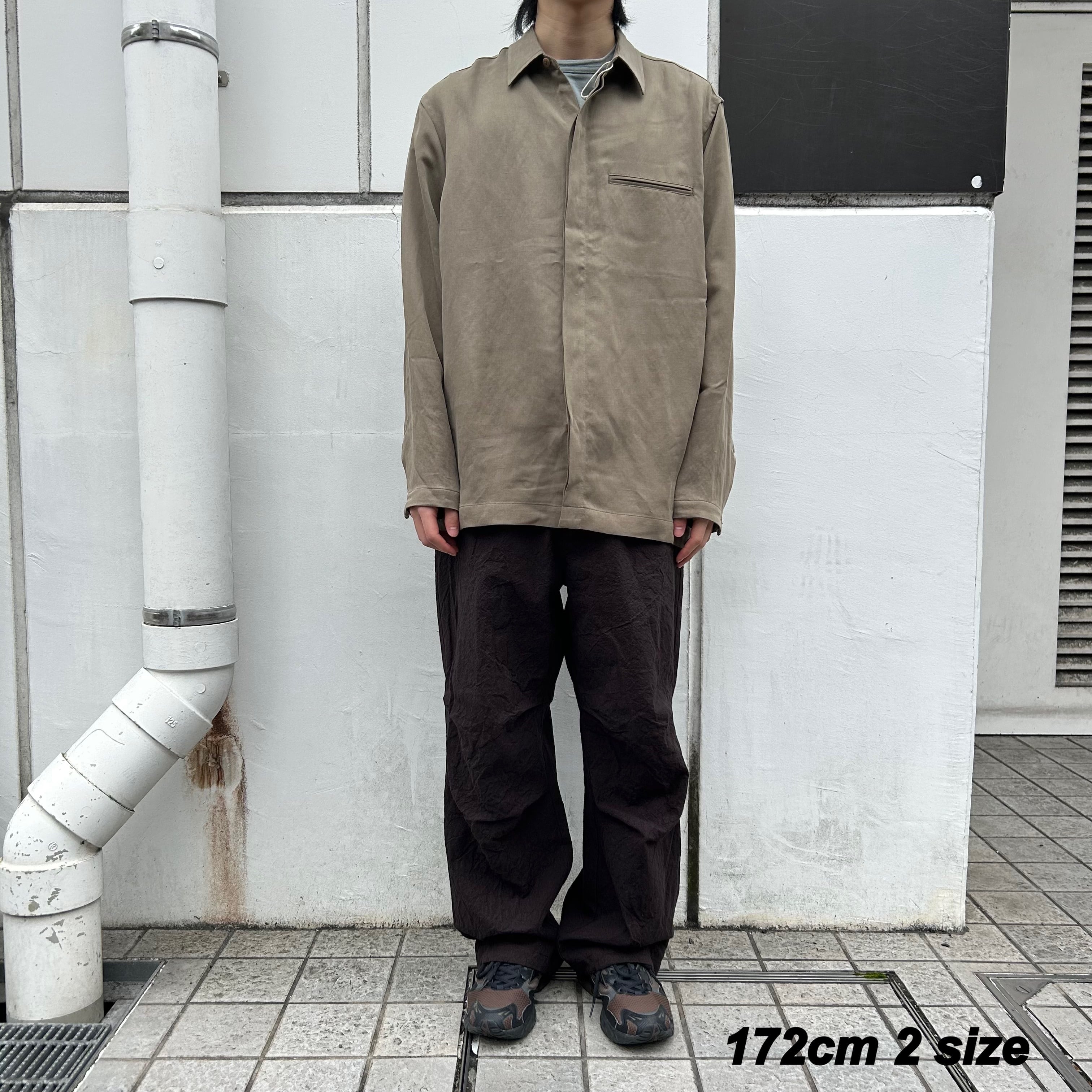 テンセルとリネンを掛け合わせた、上品な光沢を放つサテン素材を使用したシャツ。 リネン特有のドライな質感と、テンセルがもたらす滑らかな落ち感、そして控えめな艶が調和し、 ナチュラルでありながらも洗練された印象を漂わせます。