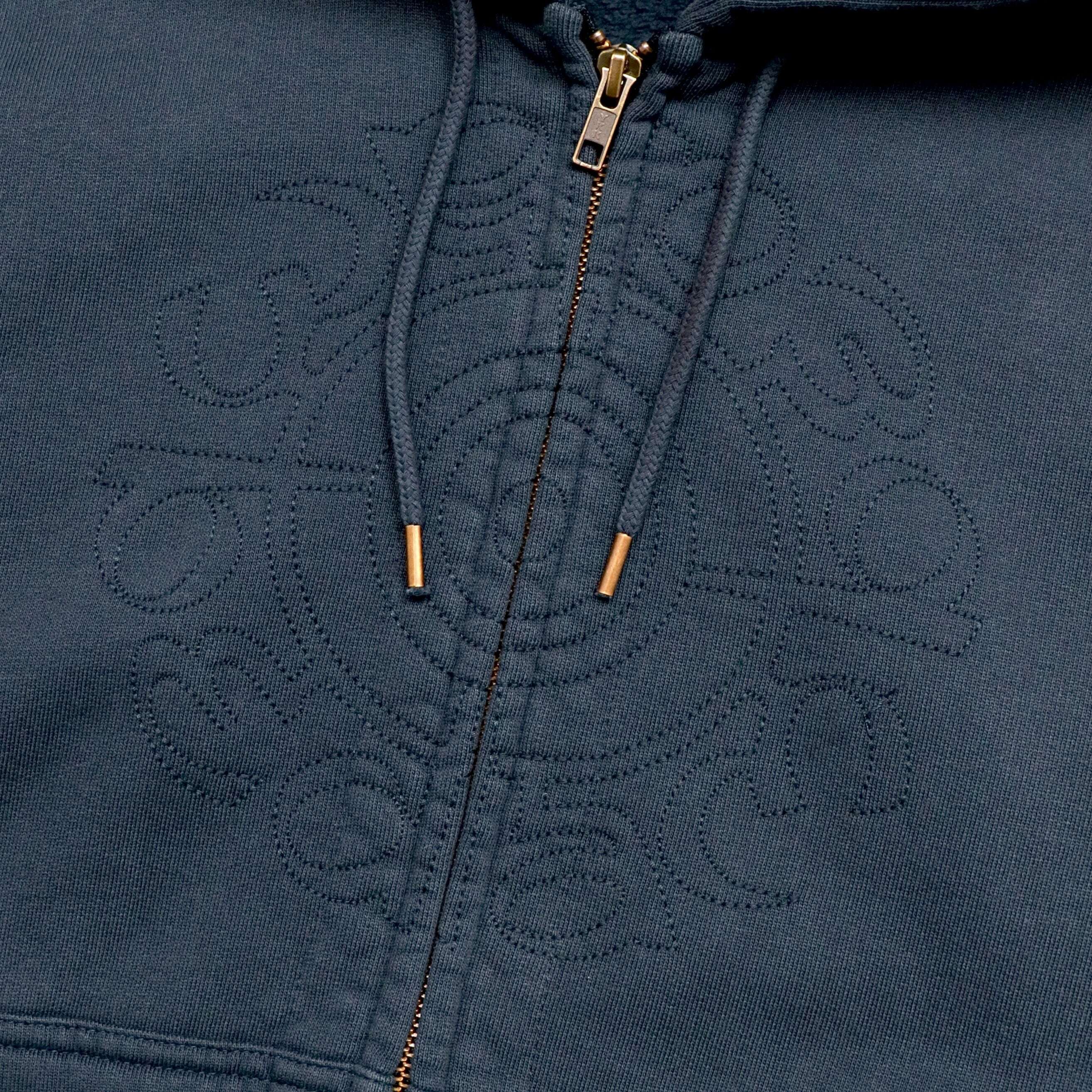 胸にターゲットロゴが同色で刺繍、両脇のサイドパネルはリブ仕様になり、ジップとフードのドローストリング先端のチップにはゴールドの真鍮を使用しており、シンプルながらディテールに拘った存在感のあるデザインとなっています。